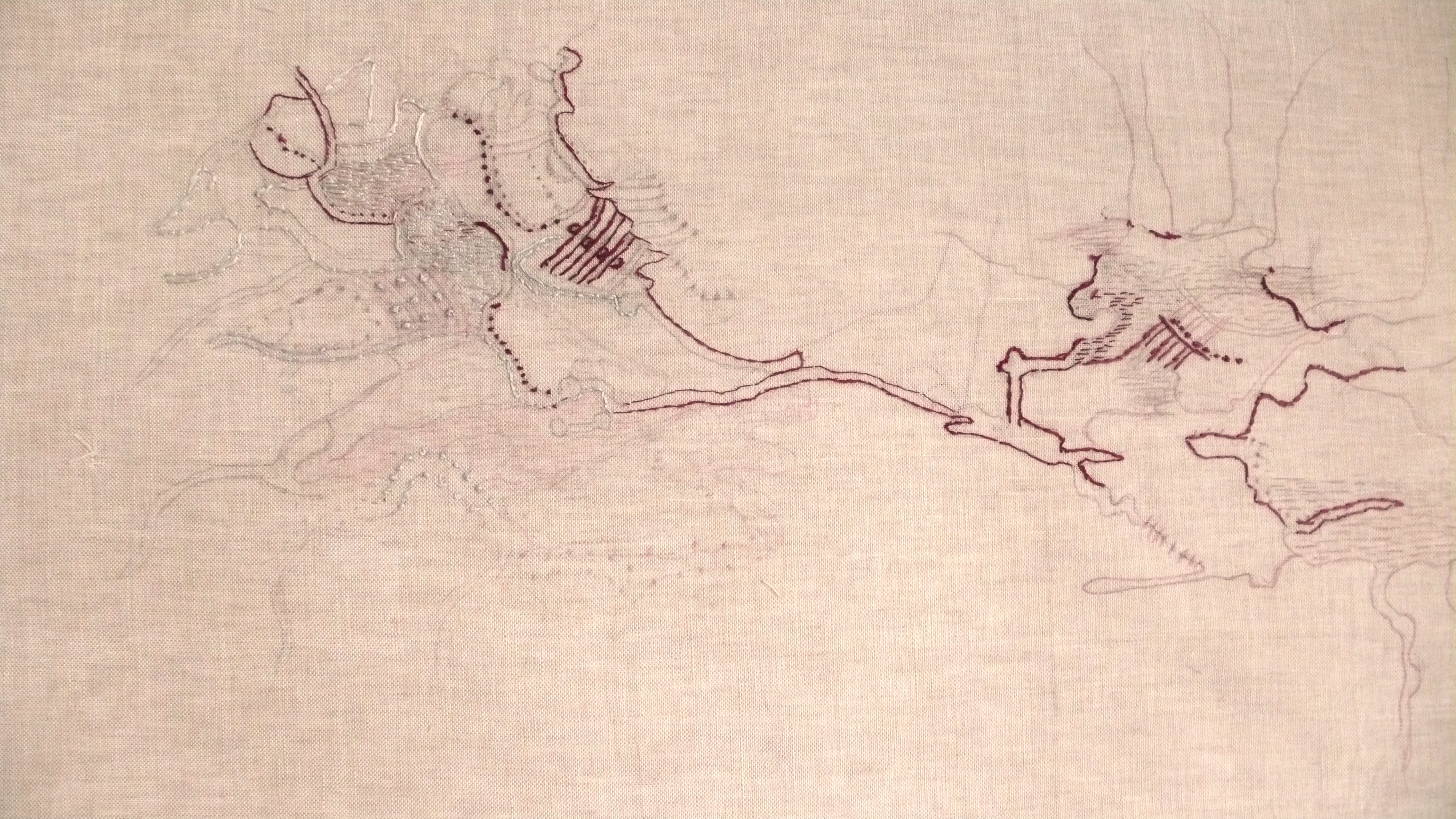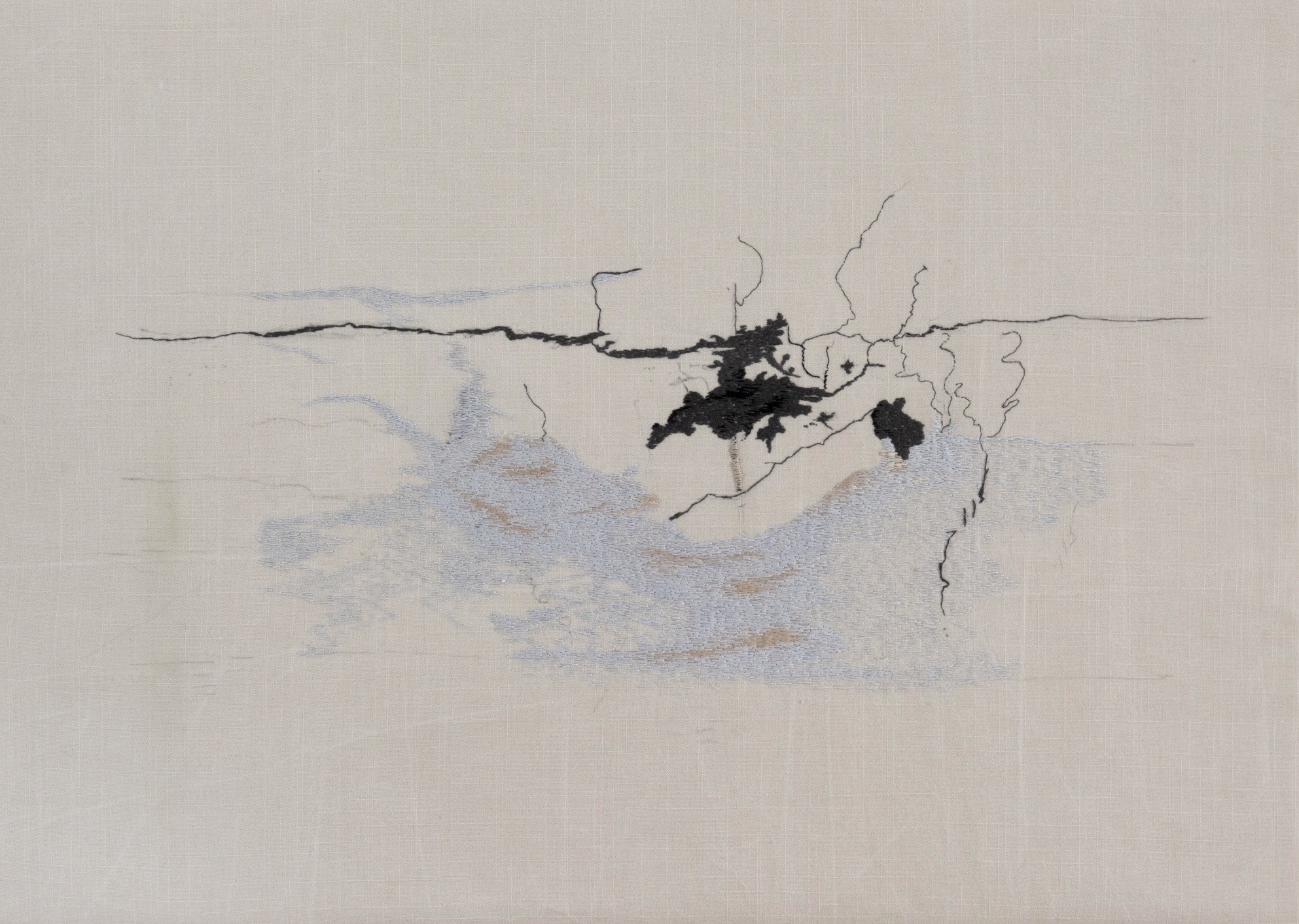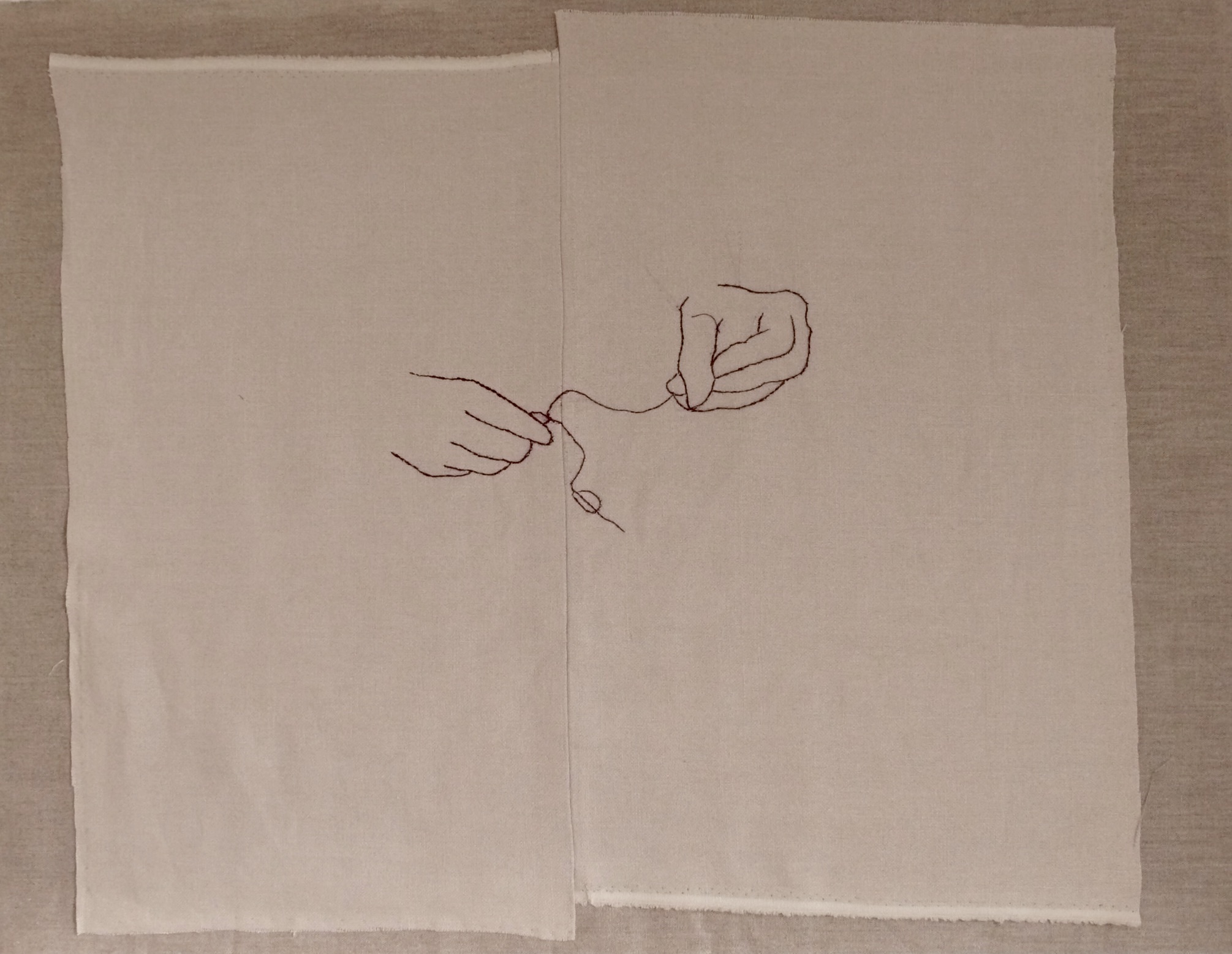 62 x 74cm, silk on found French linen, 2025 work in progress