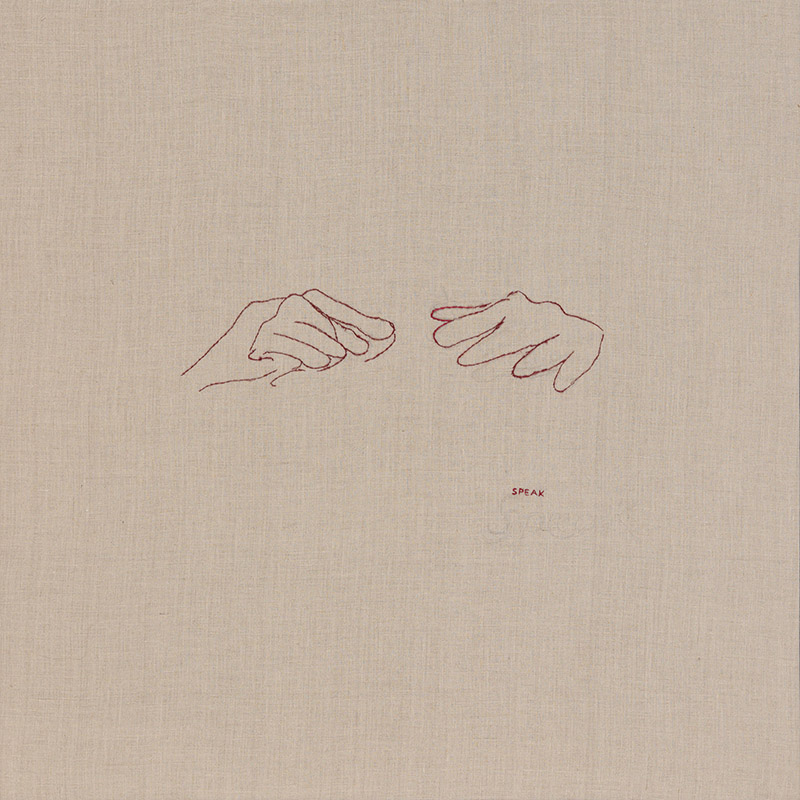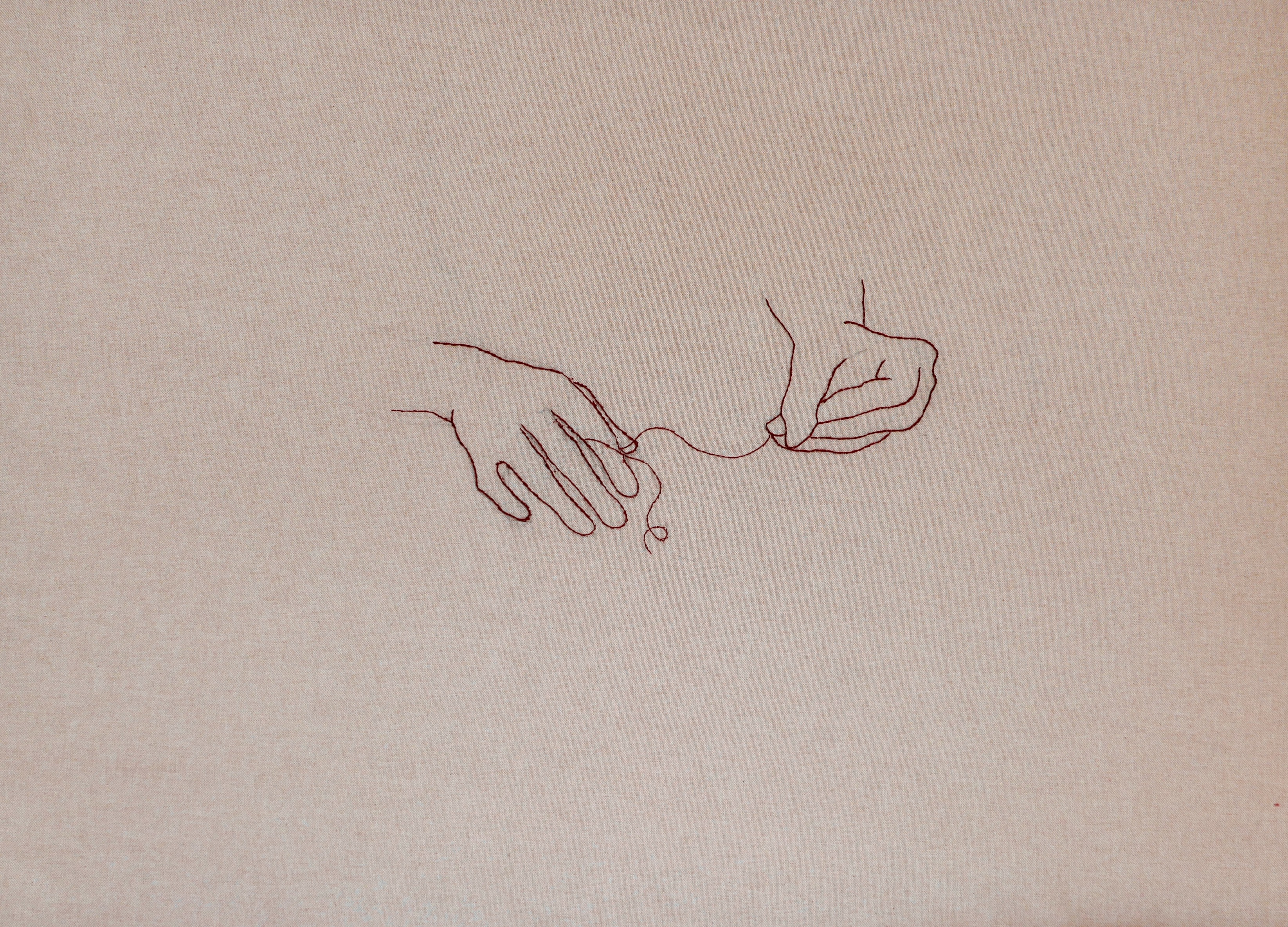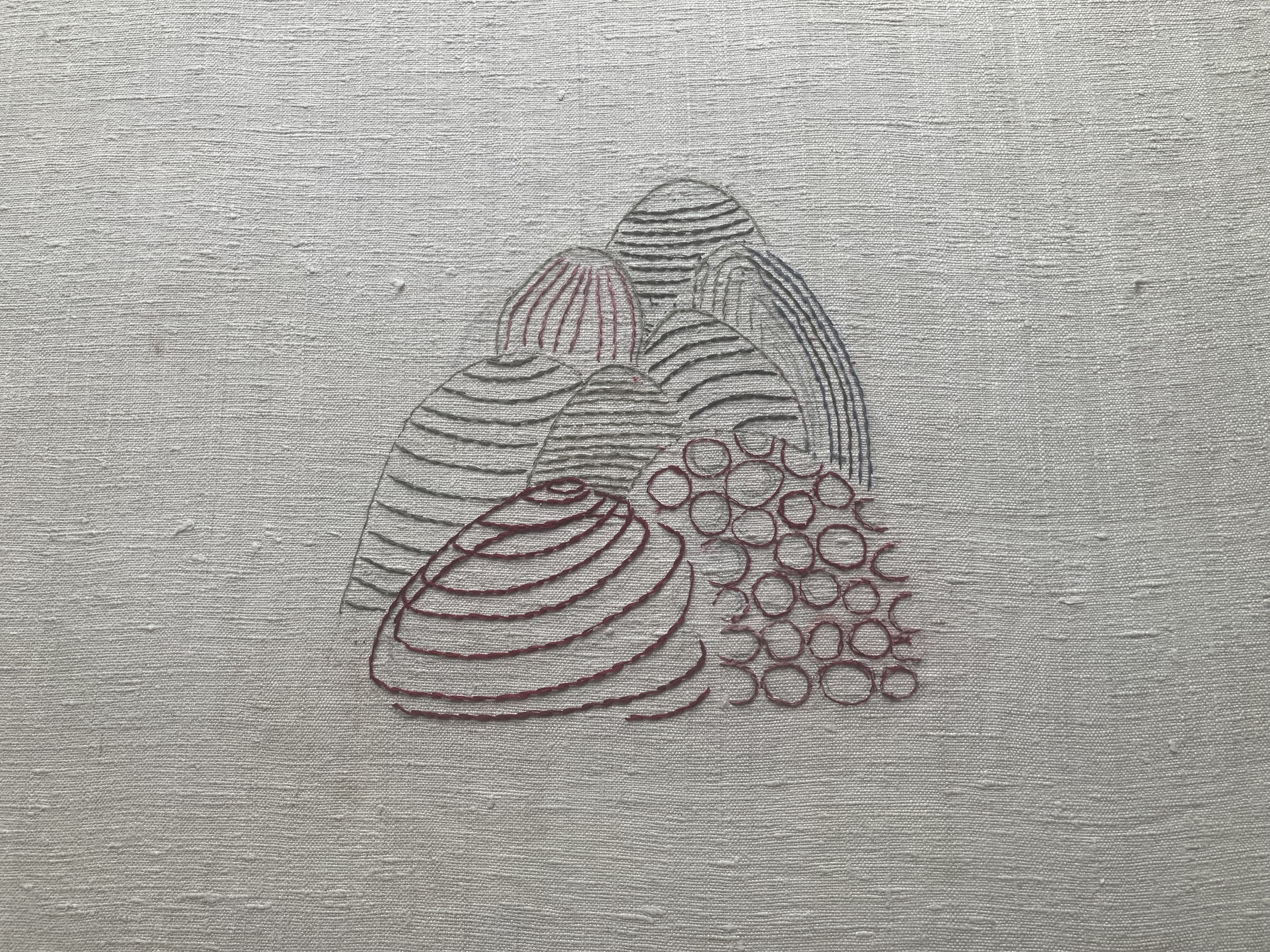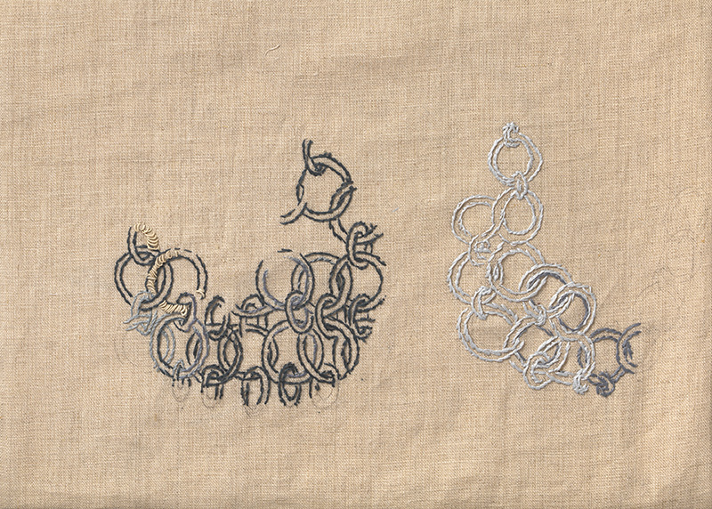62 x 74cm, silk on found French linen, 2025 work in progress