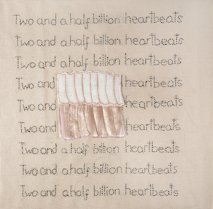 50 x 56cm, Silk on Linen and Ribbon, 2005