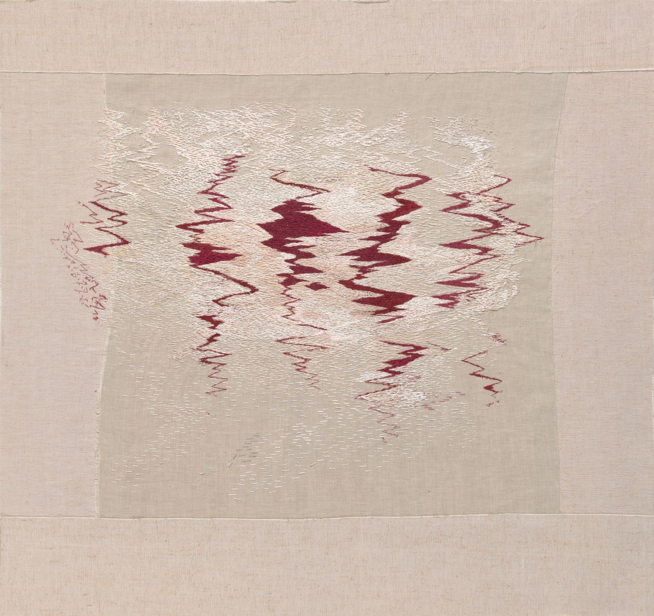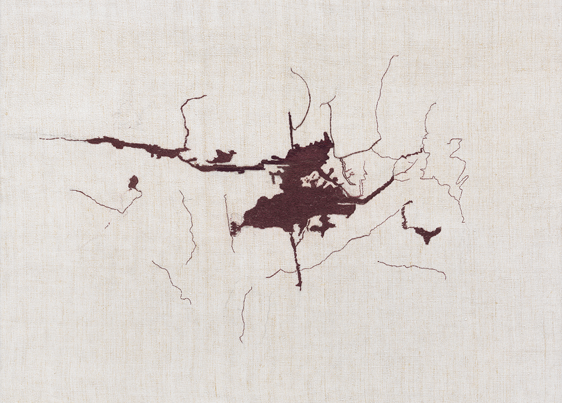 62 x 74cm, silk on found French linen, 2025 work in progress